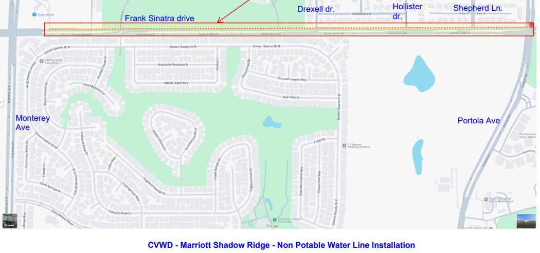 - Week of Jan. 5 (Day Work): Striping work from CVWD’s WRP-10 entrance to Riviera Drive